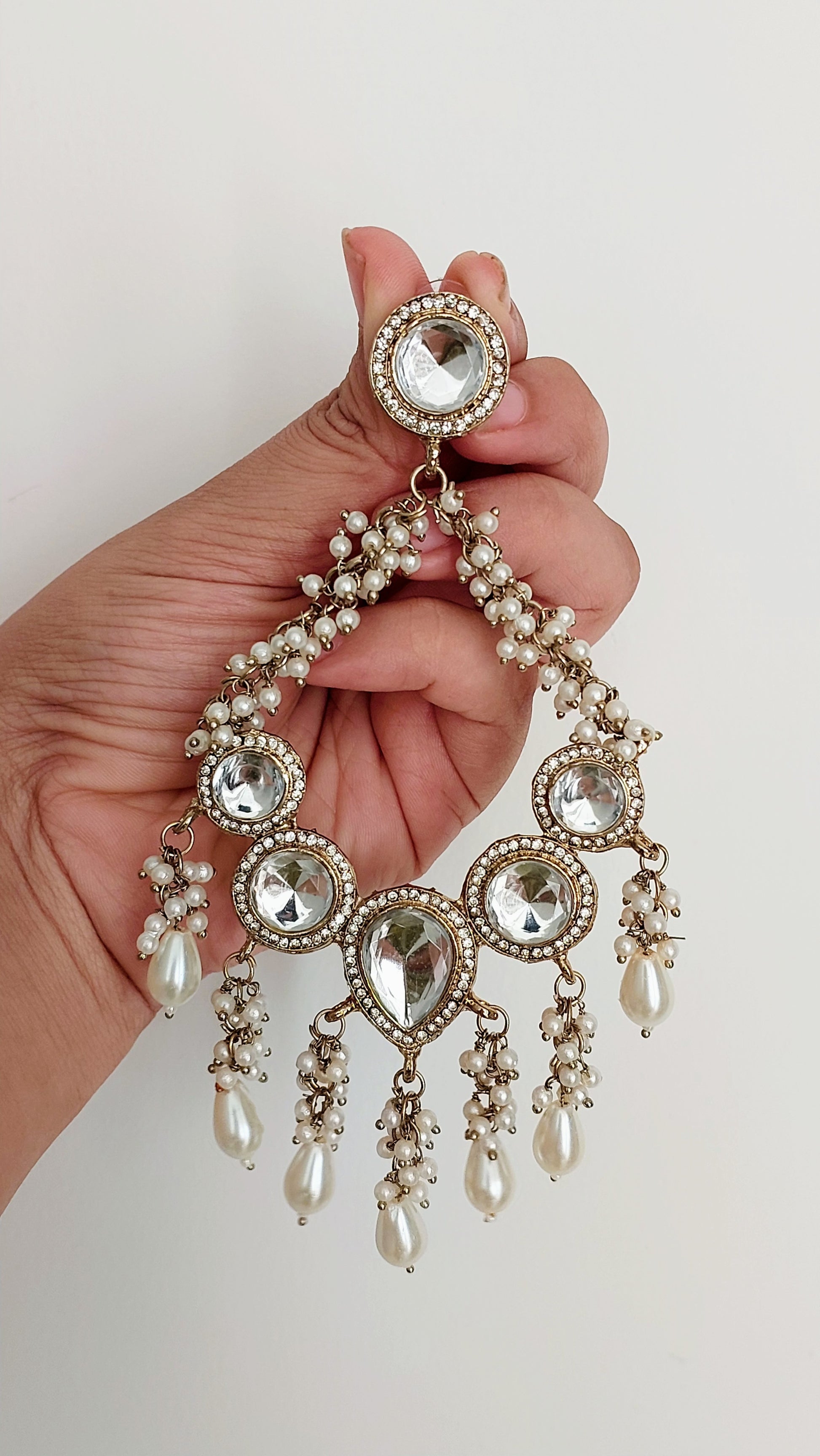 Grace meets glamour with the Minal Earrings, featuring dazzling crystals and delicate pearl drops for a regal finish. Crafted from stainless steel with an anti-tarnish coating, they’re perfect for weddings, festive occasions, or elevating your evening look.
