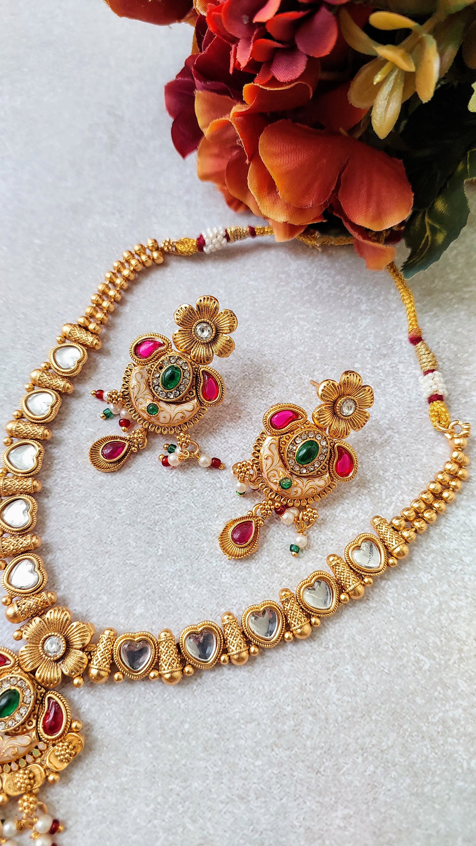 Gold look alike premium quality rajwadi necklace