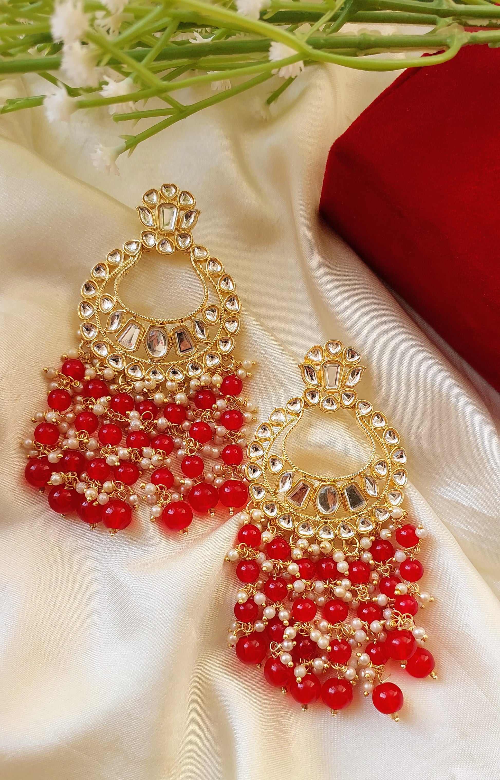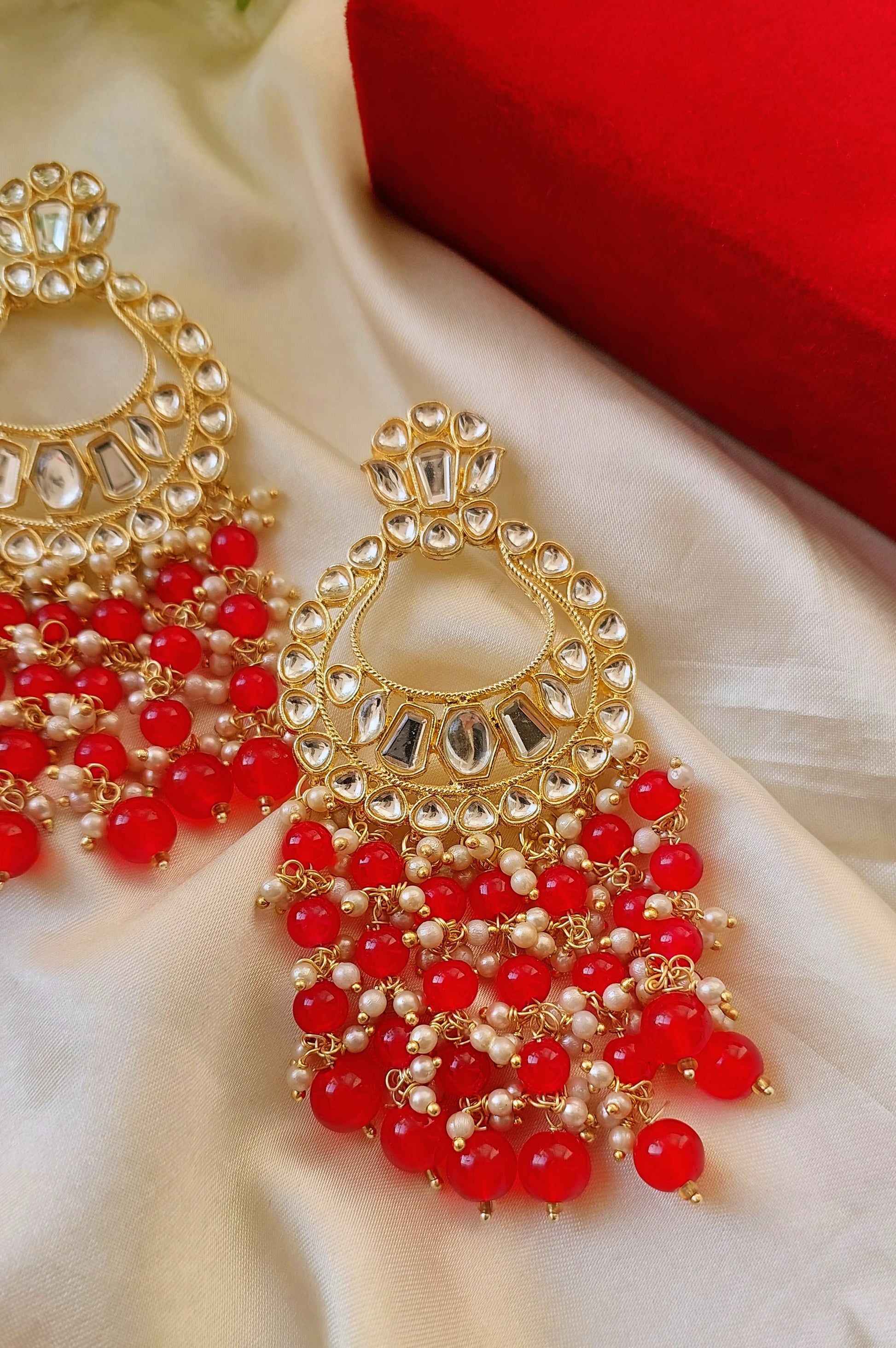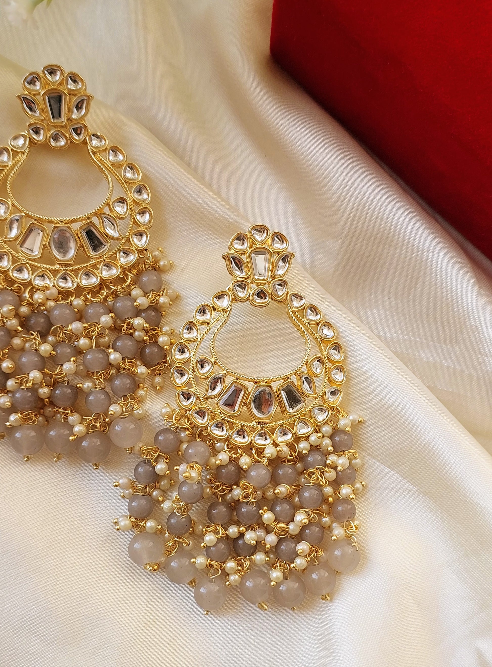 Elevate your ethnic look with our Priya Chaandbaali, designed with shimmering kundan stones and elegant black-bead detailing. Perfect for weddings, festivals, and grand celebrations. A statement pair that blends tradition with timeless charm.
